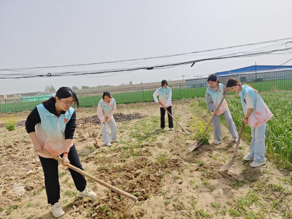 室外,阳光正好。女生们拿起工具,开始挖地为老人们能够吃上天然蔬菜而努力。