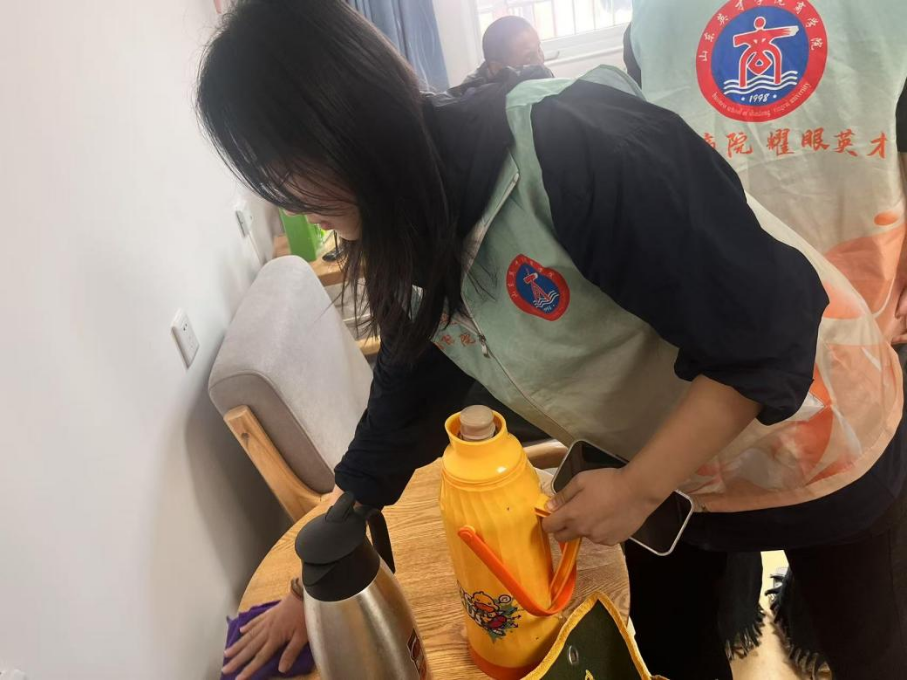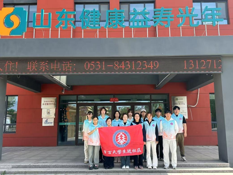 2025年4月16日的早上,山东省济南市济阳区济阳街道山东健康益寿光年济阳区颐养中心来了一群青年人。拉斯维加斯3499官网登录入口商学院(国际学院)学生身穿志愿服务的马甲,带着青春的活力与热情来到这里,开展为期一天的百万大学生进社区的志愿活动。