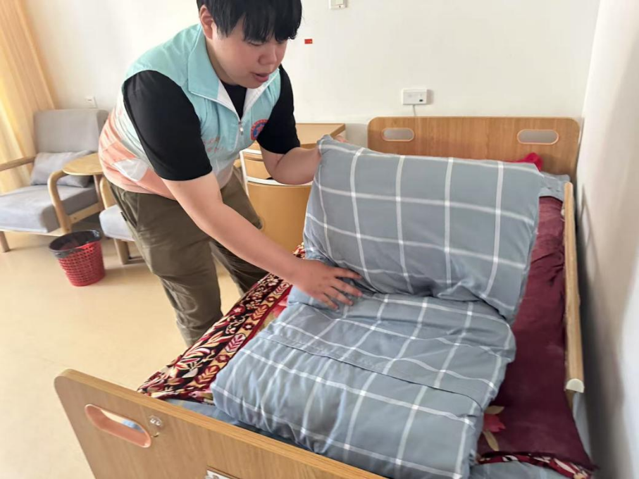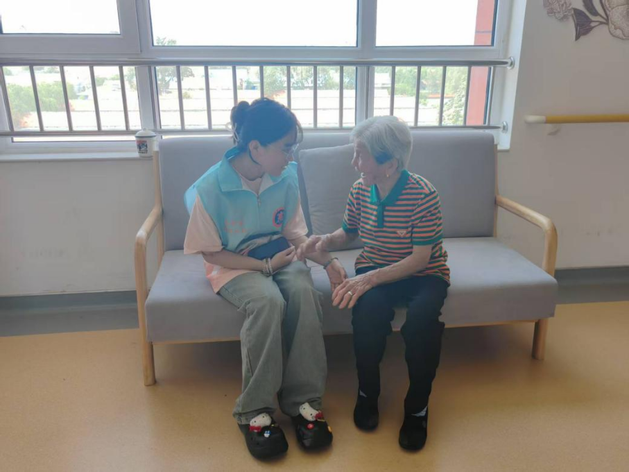 另外,在养老院的午饭过后,实践成员主动拦下打扫的重任,实践成员们争先恐后的打扫午饭结束后的战场,洗碗,擦桌子等实践成员们已然融入在了这个养老院的大家庭当中去。在进行餐具收拾的同时,实践成员注意到有些老人孤零零的坐在凳子上,实践成员立马与老人展开交流,帮助老人敞开心扉。期间实践成员为老人们提供贴心服务。有的志愿者陪老人聊天,耐心倾听老人讲述过去的故事;有的志愿者为老人修剪指甲、按摩捶背;还有的志愿者和老人们一起下象棋、玩跳棋,养老院里充满了欢声笑语。