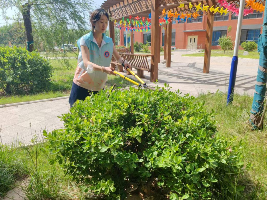 下午,一组实践成员手拿灌木剪刀和镰刀在养老院花园里进行灌木修剪和花园卫生打扫工作。实践成员在草坪上来回穿梭,原本歪七扭八的灌木丛也变得整洁美观,花园卫生也得到了改观。老人们坐在凉亭里,看着实践成员忙碌的身影,纷纷点赞。通过实践成员们全心全意的付出与帮助为老人们提供贴心陪伴,还耐心倾听他们讲述过往的故事,深入了解他们当下的生活状态,排解他们内心的孤独感,有效提升其精神状态和生活幸福感。