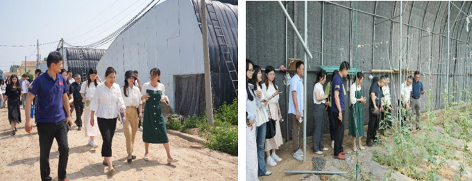 在太平街道党建办公室主任刘伟、党建办公室副主任李茂新和太平街道骇河甜源联合党委书记韩志军等同志的带领下,参观了骇河甜源瓜菜示范种植区。该示范区依托齐鲁样板示范村项目,培育多项特色农产品品种,逐步打开“农旅融合”发展的新路径。为推广区域特色农产品,在产业发展服务中心打造了助农直播间,并联合京东科技集团上线产品链接,不断促进农民增收。商学院党总支书记赵坤表示,商学院电子商务、物流管理专业可以在电商直播助农和物流链搭建等方面可提供专业服务。