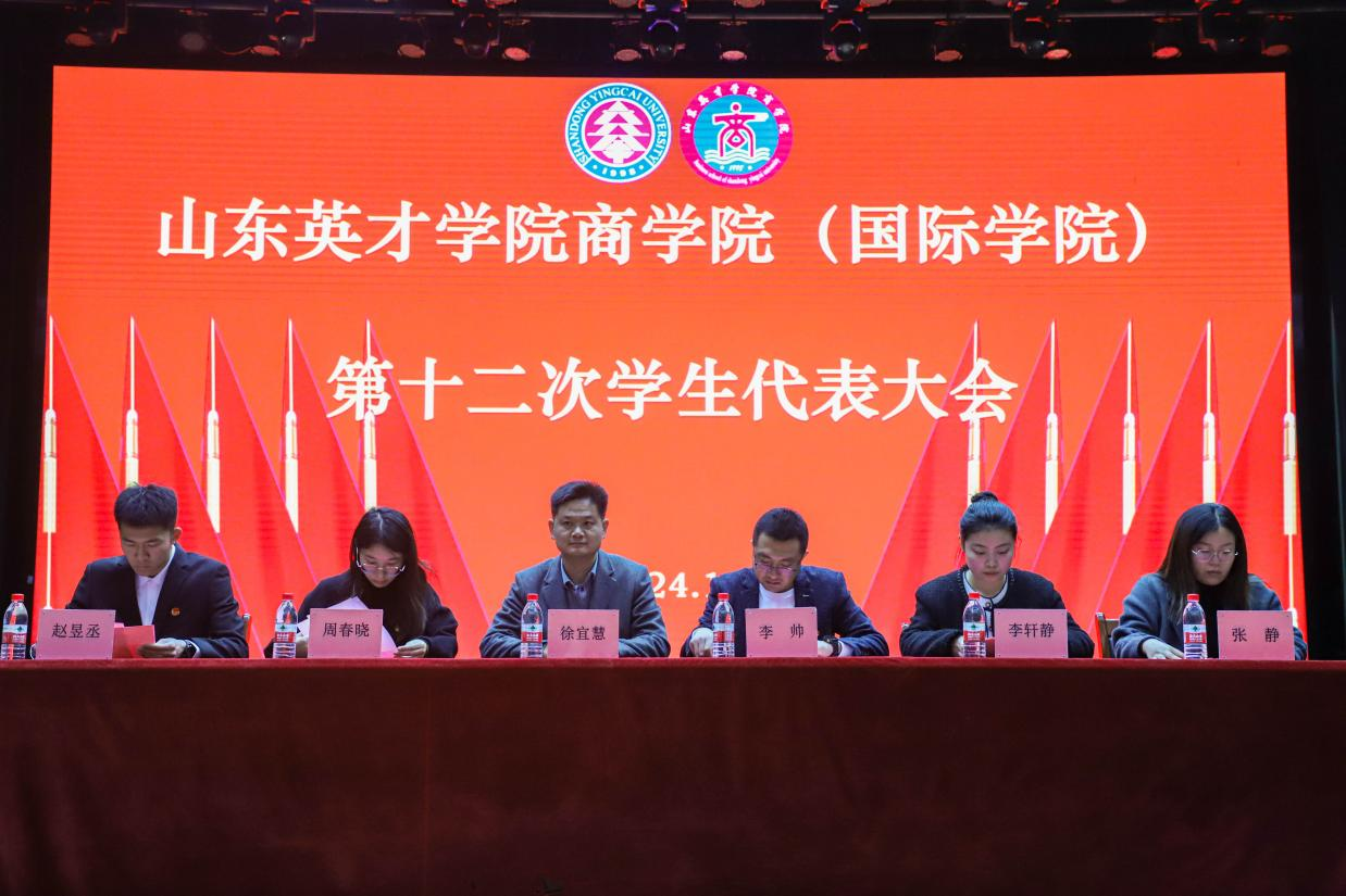 商学院(国际学院)第十二次学生代表大会在激昂的《英才之歌》中圆满结束。“春风浩荡满目新,扬帆奋进正当时”,此次学生代表大会为学院学生干部工作注入了新活力,进一步加强了学院与学生之间的沟通与联系,为推动学院高质量发展奠定了坚实的基础。