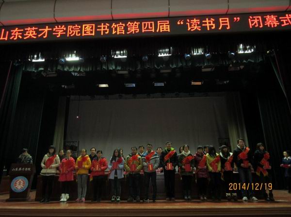 首先,馆长对本届“读书月”活动进行了全面、细致的总结。然后,学工部龙新良部长宣读表彰决定,获奖代表上台领奖。最后,刘存刚副校长讲话,要求图书馆加强信息化、数字化建设,努力发展成为一个开放式、研究型、现代化的图书馆,鼓励每一位教师、每一位同学养成爱好书、好读书的好习惯,充分利用馆藏资源,学以致用。