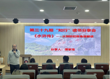 在分享会上,谭家宝老师选取了北宋宣和年间的武大郎和林冲两家人作为分析范本,从预防犯罪角度出发,引导大家进入了《水浒传》的世界。