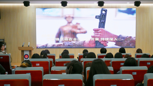 2025年3月3日中午11:40分,雷锋事迹宣讲活动启动仪式在英才讲堂隆重举行。志愿者协会纪检部部长胡亚芳通过PPT讲解和纪录片展播,生动再现了雷锋同志“全心全意为人民服务”的一生。她结合当代社会需求,提出“雷锋精神+专业实践”的创新理念。