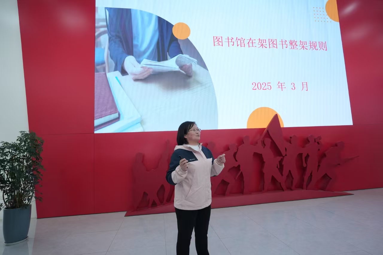 随后,史林宁老师讲解图书排架规则,各位老师带领同学们分队分区整架、顺架。