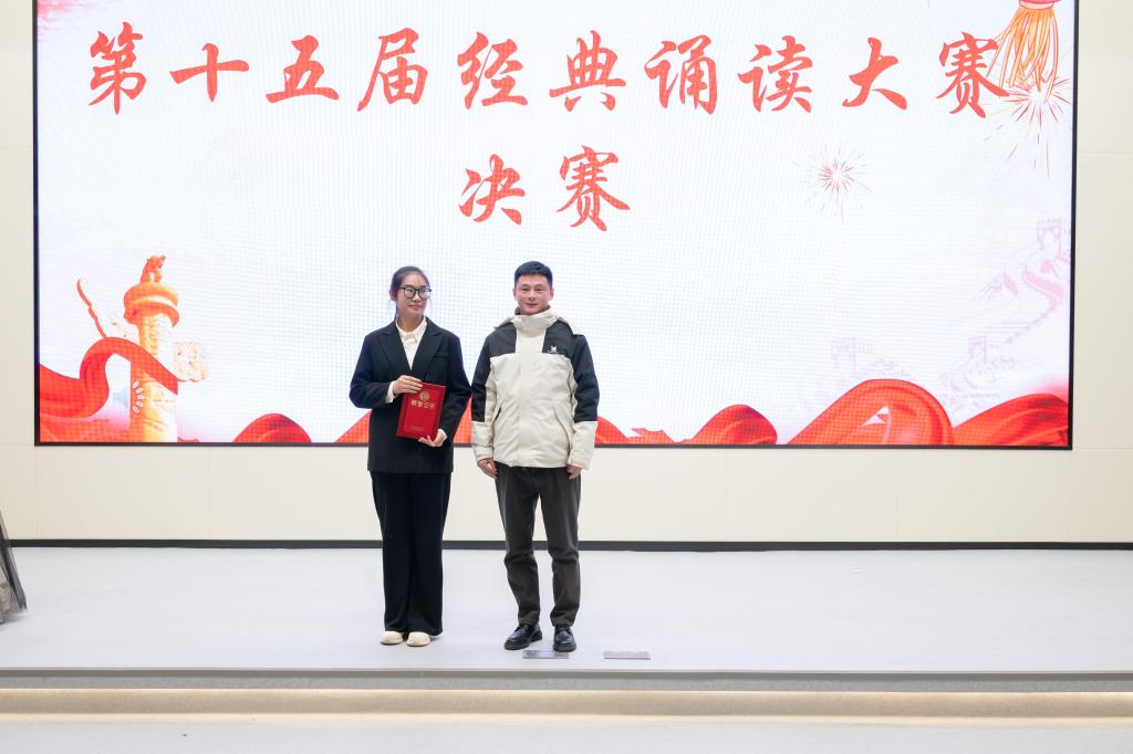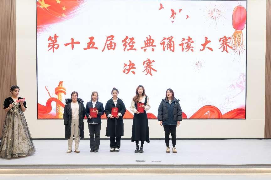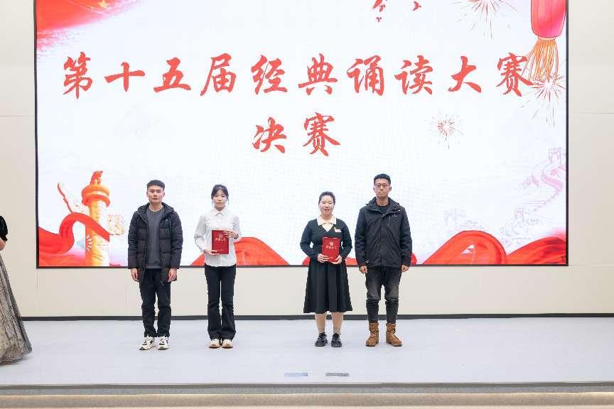 决赛现场经典诵读气氛浓烈,同学们以饱满的激情、激昂的语言、大方得体的举止来展现自己的实力。决赛评委认真评鉴、当场亮分、公平公正。经过两个小时的精彩比拼,最终作品《一剪梅·红藕香残玉簟秋》《觉醒年代》获一等奖,《月光下的中国》《与时代同向,与祖国同行》获二等奖,《致橡树》《鸭绿江之歌》《铭记抗美援朝,以拼搏之姿告慰英烈》获三等奖,《书写青春华章》《向祖国报告》《诗韵流殇看今朝》《读中国》获优秀奖。