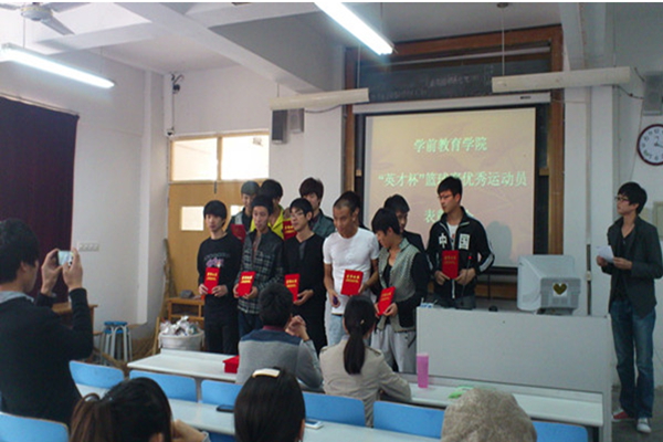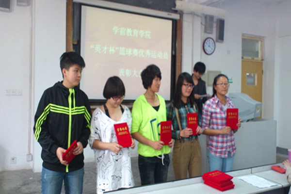 为期十天的第11届“英才杯”篮球赛于近日圆满落幕,其中学前教育学院获得了女子组亚军,男子组第四名的佳绩。为了对同学们的努力表示鼓励,学前教育学院特举办了“英才杯”优秀运动员表彰大会。出席本次颁奖大会的有学前教育学院基层团委书记王坤丽、学前教育学院体育部指导老师李振、学前教育学院学生会主席张维,体育部全体成员以及各班班委参加了会议。