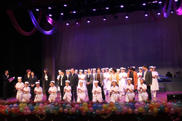 一支欢快的啦啦操《Together》,拉开了庆祝5.12国际护士节文艺汇演的序幕。精彩的大合唱《中国护士之歌》和配乐诗朗诵《天使颂歌》,燃起了现场观众对护士高尚情操的敬佩,引起了全体观众的共鸣。小品《理解》以一种幽默风趣的话语唤起了护士的心声,呼吁大家相互理解,创建和谐医患关系。优美的舞蹈《江南雨》,动听的歌曲《有形的翅膀》、《一千零一夜》将大家带进了唯美的空间。季媛媛老师弹奏的《洞庭新歌》、王斐老师演唱的《好运来》、火爆的爵士舞掀起了会场一阵阵高潮。“护士礼仪”表演标准的动作,优美的姿态激起了大家一阵阵掌声。晚会在白衣天使们带来的手语表演《感恩的心》中拉下了帷幕。