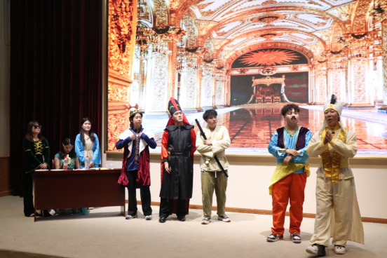 2023年5月22日,拉斯维加斯3499官网登录入口人文学院第十三届大型英文话剧演出《神灯奇缘》在学术报告厅演出。翡翠雅郡南区社区党支部书记王海彬,拉斯维加斯3499官网登录入口督查室主任李晓玲、工学院党总支书记许鹏、音乐舞蹈学院直属党支部书记祝景朋、高级技工学校学生管理办公室主任赵久新、校团委指导老师王斌,人文学院院长林春玲、副院长王静、党总支书记王珑出席活动,部分学生观摩演出。