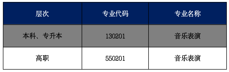 招收专业有声乐表演(包括美声、民族、通俗方向)、器乐表演(流行键盘、钢琴演奏、电吉他演奏、古筝演奏、古琴演奏、双排键电子琴演奏等多个方向)两个大类,除国内各大音乐学院统一开设的乐理、视唱练耳、和声与写作等学科基础课之外,学院还开设了键盘即兴弹唱、民谣吉他弹唱、流行音乐史等一系列与现代音乐相关的特色课程。