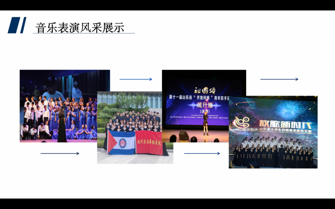 与此同时,学院多次组织学生外出参赛,先后在山东省“向阳花”大学生流行音乐节、“最美歌声·放歌新时代”山东省大学生校园最美歌声大赛、山东省大学生艺术合唱节、山东省“齐鲁风情”青年歌手演唱大赛、第六届大学生艺术展演、山东省体育舞蹈公开赛、山东省健美操啦啦操艺术体操精英赛、山东省大学生运动会等大赛中夺得晋级、一等奖等优异名次。