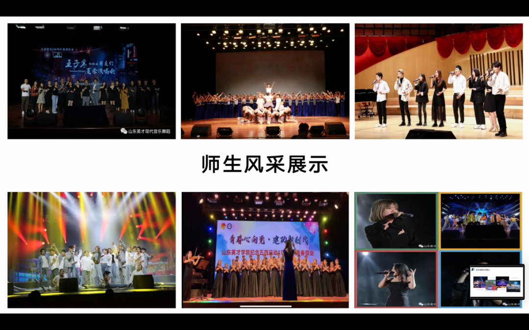 学院重视学生实践和大赛能力的培养。在实践方面,学院组织学生参加一些大型活动,为他们提供更大的实践平台。近年来,他们参加了山东省、甘肃省、济南市庆祝中华人民共和国成立70周年文艺晚会,天猫双十一晚会、北京卫视2020年环球跨年冰雪盛典、中央电视台新年音乐会、山东省庆祝中国共产党成立100周年文艺演出、2022届济南市大学生毕业典礼等重大活动。