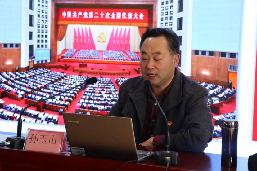 孙书记在“以中国式现代化推进中华民族伟大复兴”为主题的报告中从党的二十大的主题、主要成果、过去5年的工作和新时代10年的伟大变革、马克思主义中国化时代化、中国式现代化、坚持党的全面领导和全面从严治党等8个方面做了全面系统、重点突出的宣讲解读。