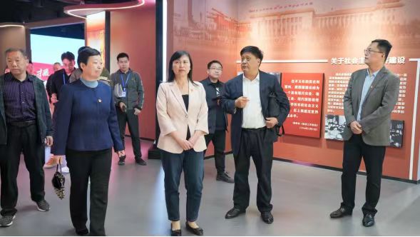 党委副书记孙玉香介绍了党建与思政教育基地建设的初衷、程序和原则并从教育基地建设的意义作用、主要举措、示范价值等方面进行了重点强调。党史专家一行实地考察了学校党建与思政教育基地,对基地“新民主主义革命时期、社会主义革命和建设时期、改革开放和社会主义现代化建设新时期、中国特色社会主义新时代”四个历史时期展陈的文字、图片、视频、实物等逐个进行审核,对声、光、电等智能化技术、大屏化手段等逐个进行察看,在基地现场与校领导进行深入交流。