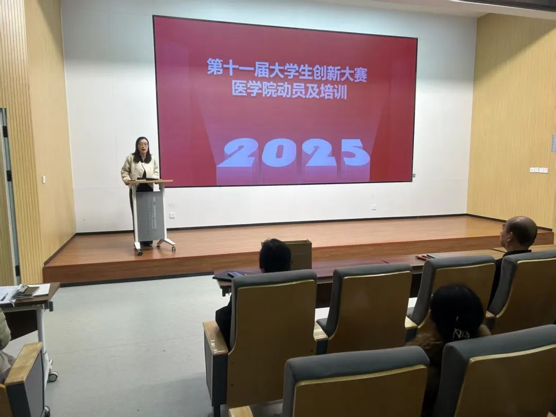 2025年3月7日至11日,医学院组织了全体教职工与学生参与第十一届大学生创新大赛动员活动。活动中,学院创新创业工作小组王辉老师强调创新对医学发展的重要性,鼓励师生们勇于突破传统,积极投入到创新项目中。老师们也分享了开展创新项目经验,为学生们答疑解惑,点燃了大家参与大赛的热情,为后续工作的开展奠定良好基础