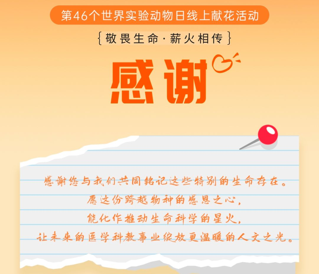 4月24日,医学院举行了第46个“世界实验动物日”纪念活动,师生们共同缅怀那些为科学研究和人类健康事业做出巨大贡献的实验动物。
