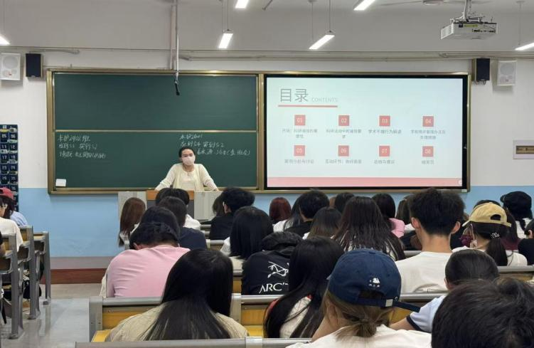 班会开始时,各班辅导员结合PPT内容,向同学们阐述了科研诚信的意义。强调:“科研诚信是学术研究的生命线,是保证学术成果真实性和可靠性的基础。”在大学阶段,遵守学术规范不仅是对他人知识产权的尊重,更是对自己学术生涯的负责。只有坚持实事求是、严谨治学的态度,才能为未来的学术研究和职业发展奠定坚实基础。