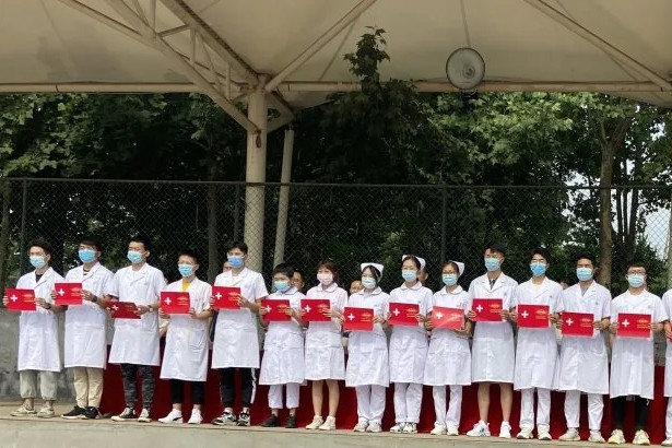 医学院举行了特殊的室外实习动员大会,