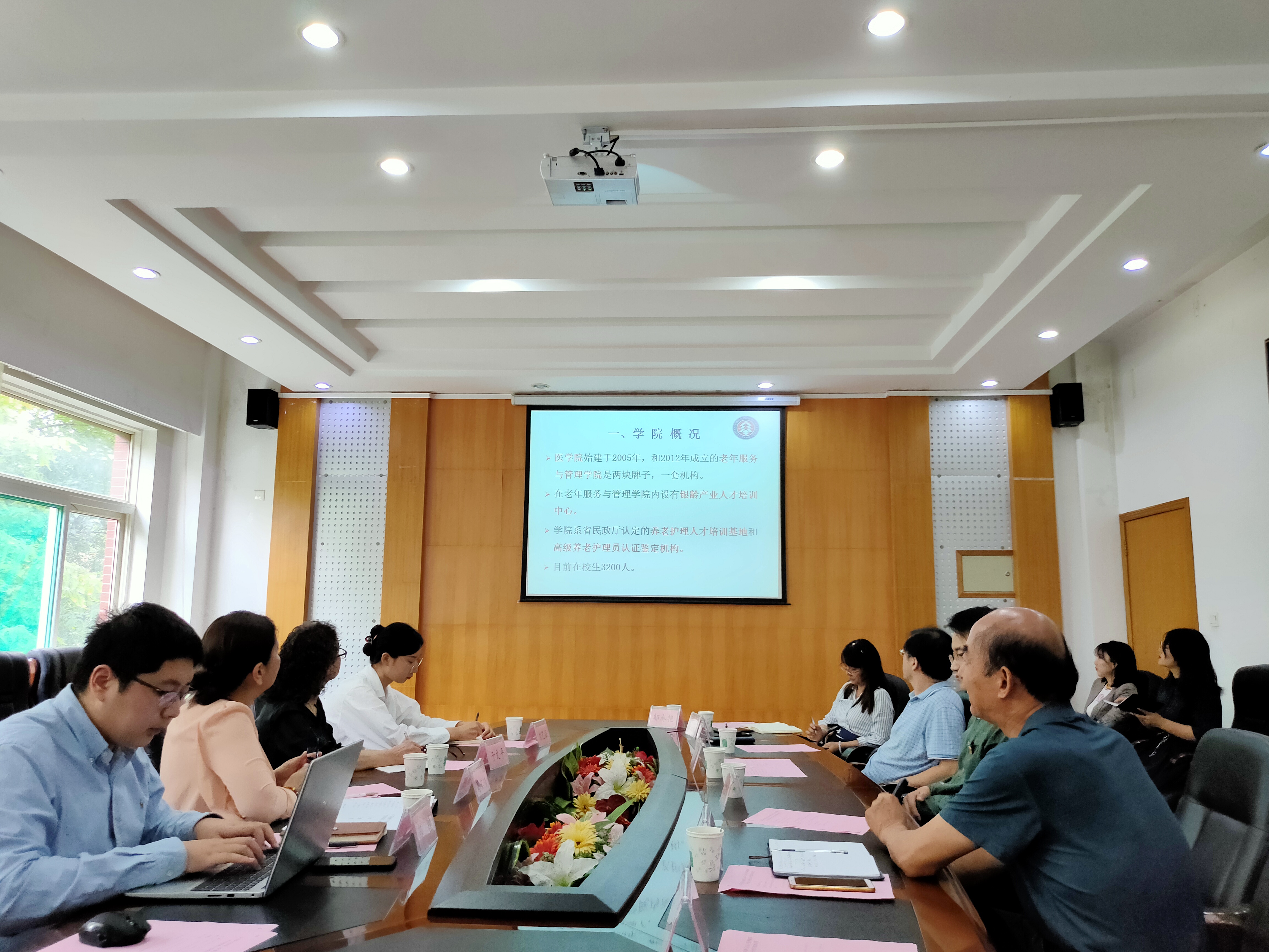 接着,医学院院长卢传华介绍医学院老年服务与管理专业人才培养情况、师资队伍、专业特色、教学质量以及各专业就业特点。