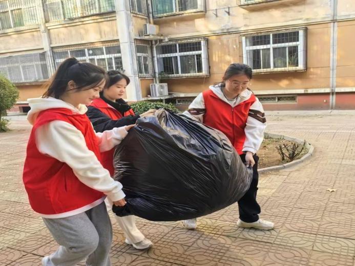 实践团成员进行垃圾清理,她们细致分类,不怕脏累,将各类垃圾妥善处理,以实际行动提升社区环境,引领绿色生活风尚。
